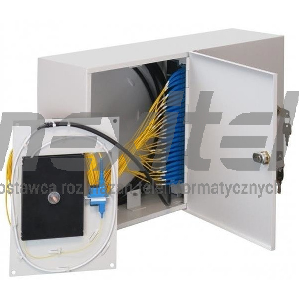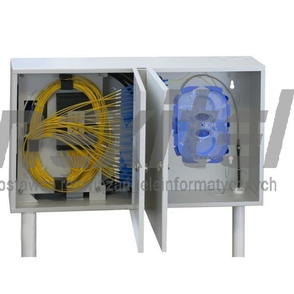 - Umożliwia zakończenie kabli dochodzących do budyku od centrali telekomunikacyjnej, kabli pionowych oraz montaż splitterów optycznych