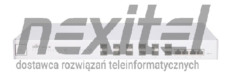 Łączność światłowodowa jest zapewniona przez 12 portów SFP+, natomiast do połączeń kablowych CAT 6/5e, US-16-XG służą cztery porty 10G RJ45.