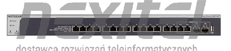 Przełącznik ProSAFE XS708T firmy NETGEAR jest zaawansowanym switchem Smart Managed, które został wyposażony w 16 miedzianych portów 10-gigabitowych oraz dwa współdzielone porty miedziane/SFP+ typu Combo.