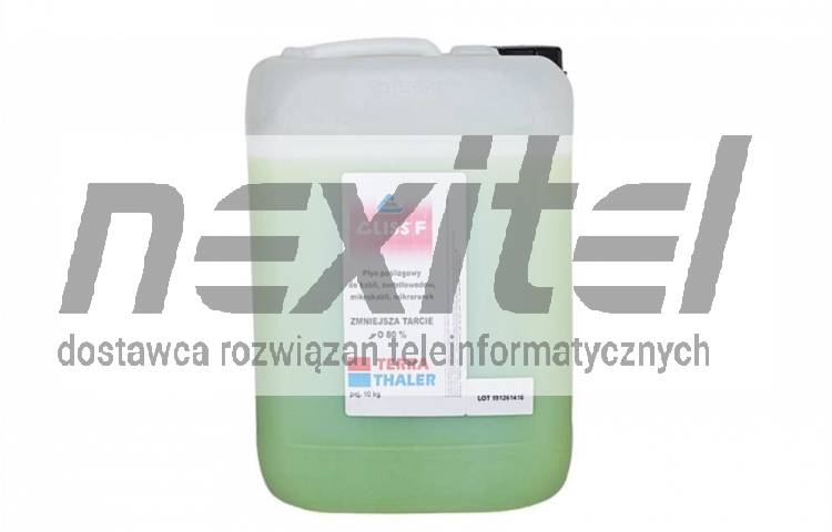 Płyn GLISS F do wdmuchiwania kabli, światłowodów, mikrokabli oraz mikrorurek o pojemności 10L.