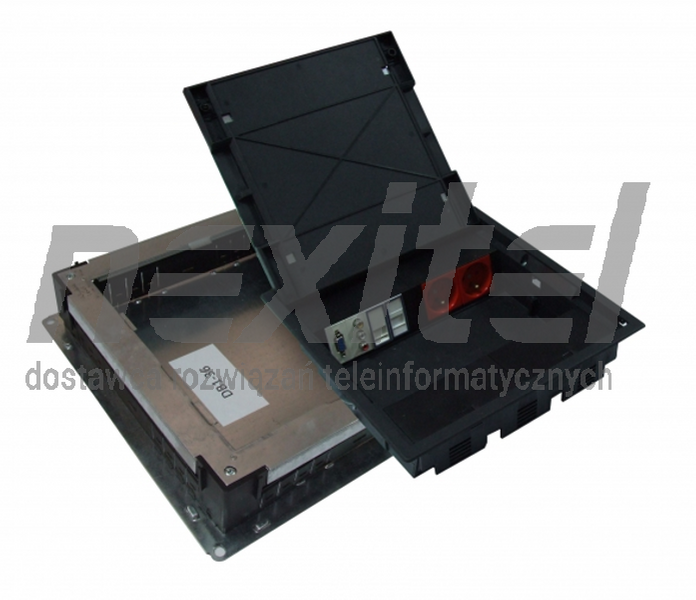 Puszka podłogowa wraz z ramką do montażu osprzętu, na 16 modułów 22,5x45