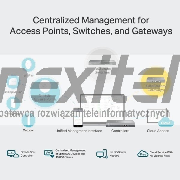 Centralne zarządzanie punktami dostępowymi, przełącznikami i bramami sieciowymi