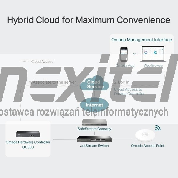 Poprzez platformę do programowego sterowania infrastrukturą sieciową kontroler sprzętowy OC300 zapewnia możliwość w pełni scentralizowanego zarządzania punktami dostępowymi, przełącznikami i bramami sieciowymi — i to z wykorzystaniem tylko jednego interfejsu.