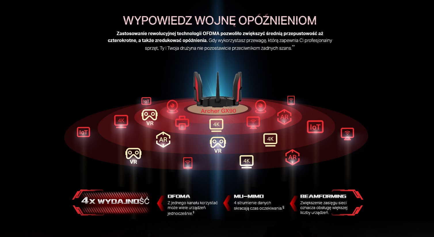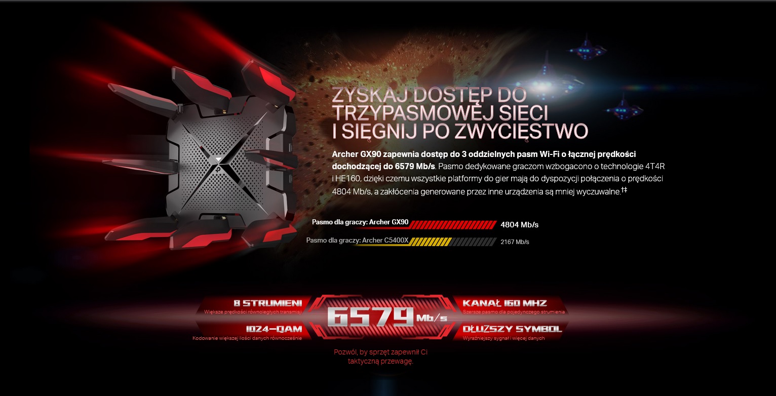 -Trzypasmowy router Wi-Fi 6 dla graczy, standard AX6600