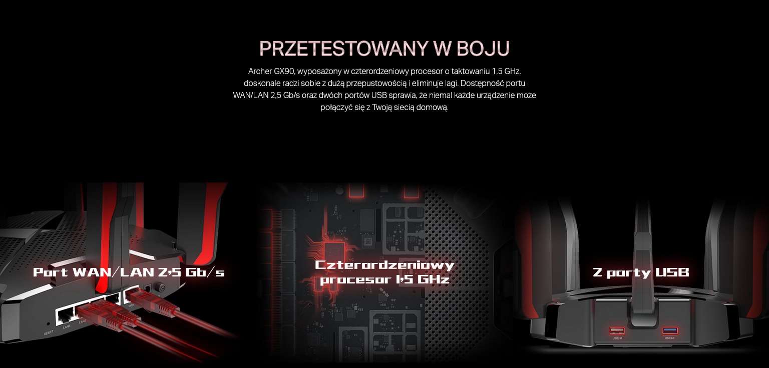 -Urządzenie oferuję ultraszybkie połączenie przewodowe, port WAN/LAN 2,5 Gb/s