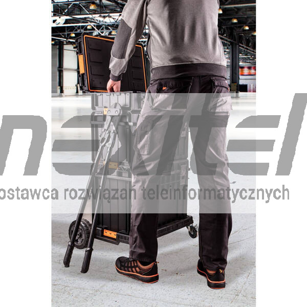 Wykonane z materiału o wysokiej jakości spodnie robocze, wzmocnione w miejscach częściej występujących przetarć, potrójne szwy oraz możliwość używania nakolanników.