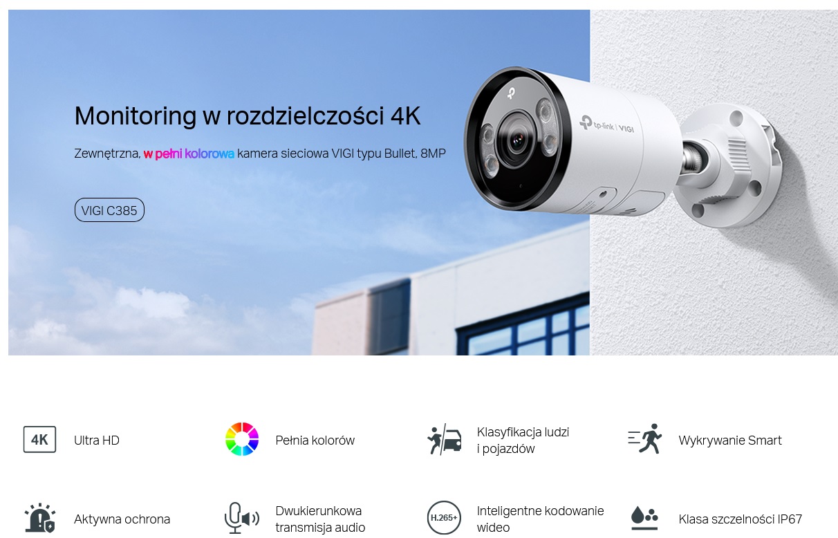 -Zewnętrzna, w pełni kolorowa kamera sieciowa VIGI typu Bullet, 8MP
