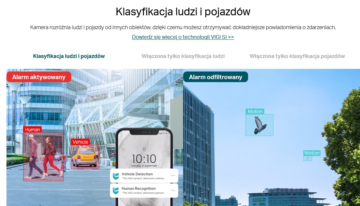 -Kamera potrafi klasyfikować ludzi bądź pojazdy